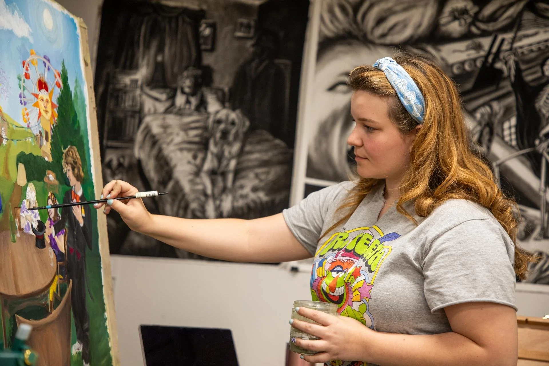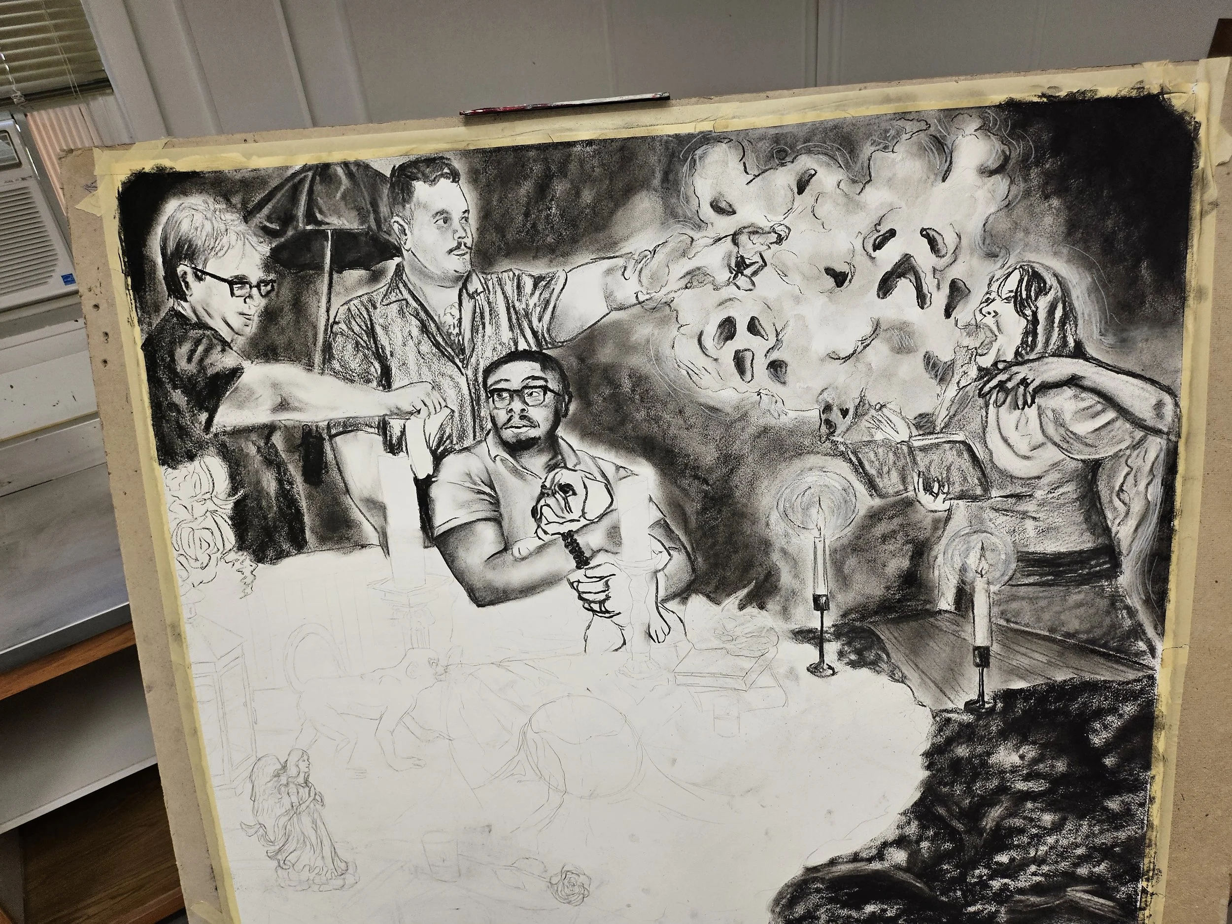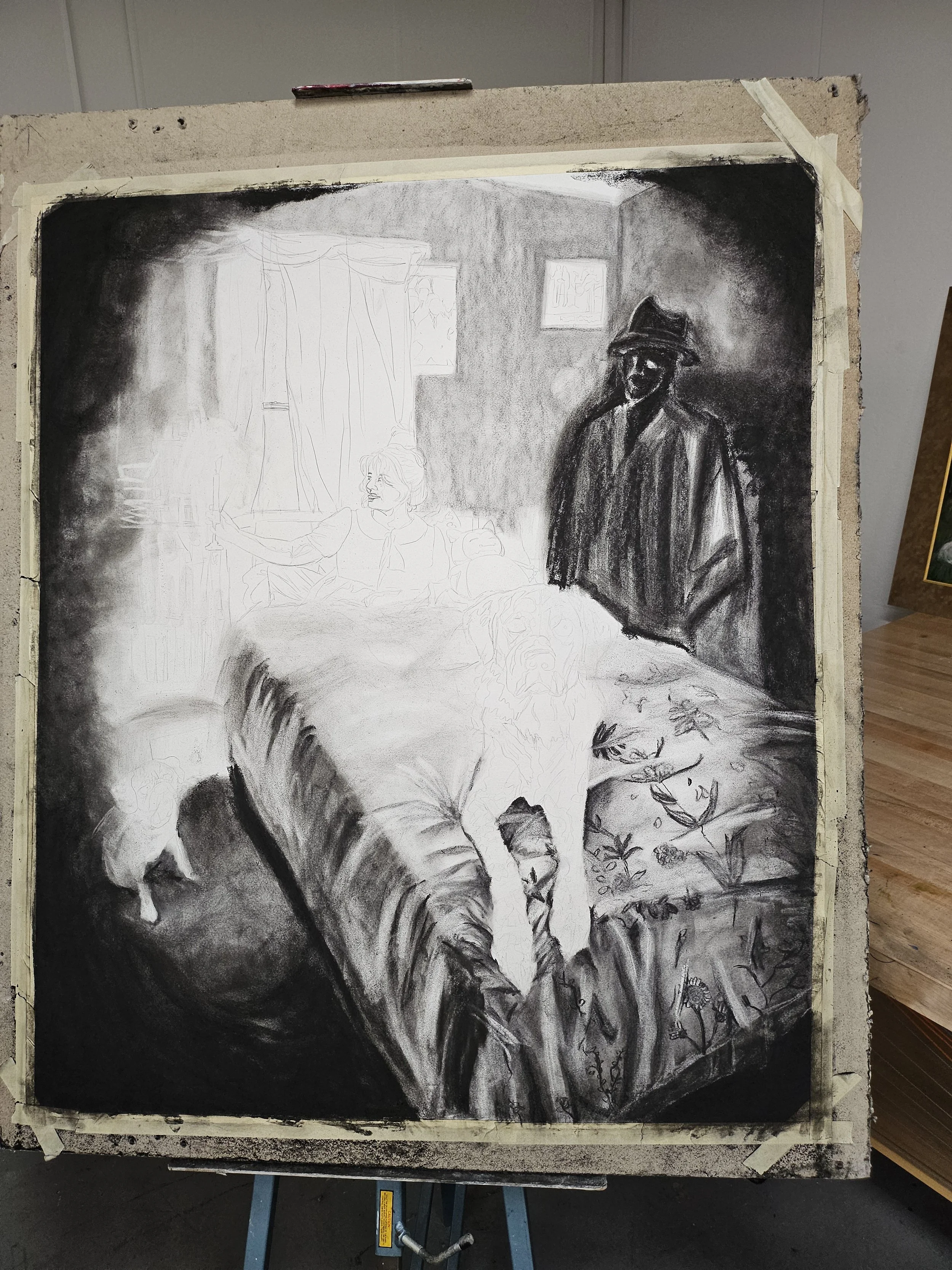 In Summer of 2024 I was given the opportunity to join a small Summer Research group at McDaniel College which focused on Narrative Artworks. Each project we worked on had to be a minimum of 3 feet across, and we had to create our own reference photos. We were also encouraged to look at master works to inspire compositions.